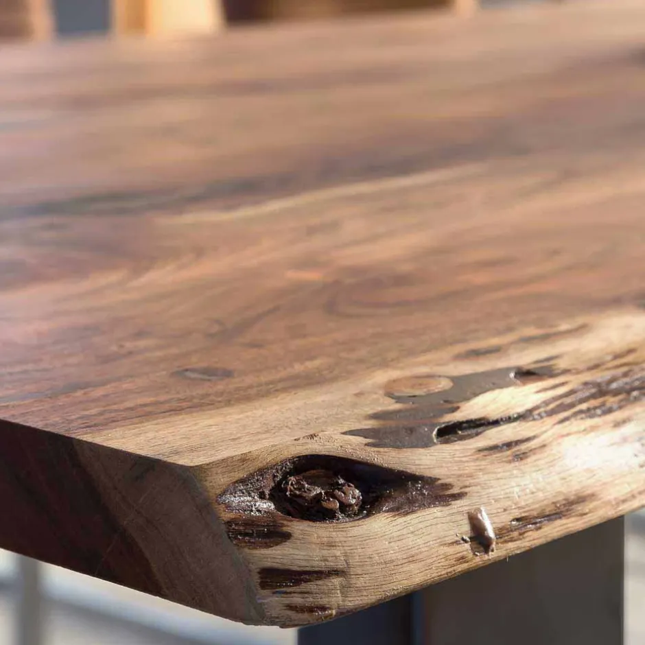 - Tischplatte aus massivem Akazienholz, ca. 3,8 cm stark