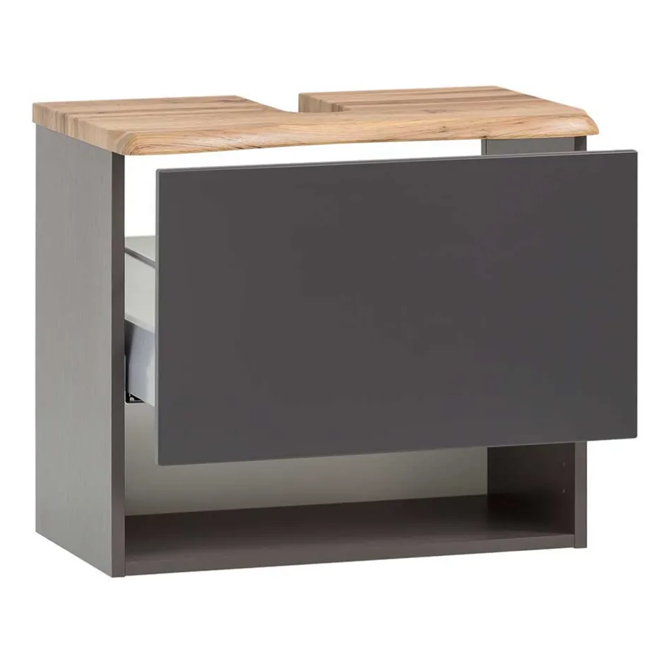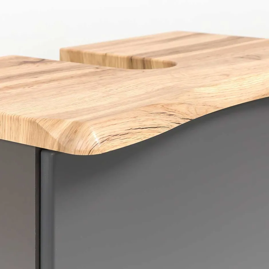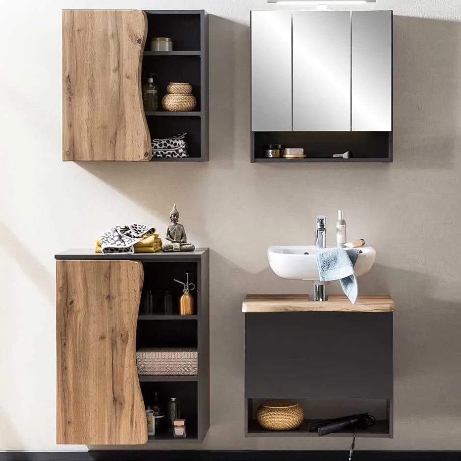 - Schicke Badmöbel in Dunklegrau und Wildeichefarben Baumkantenopotik
