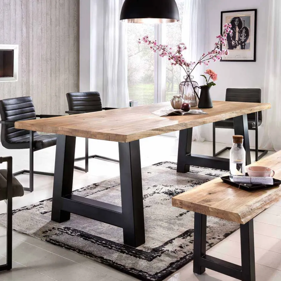 - Rustikaler Esstisch in Eichefarben und Schwarz