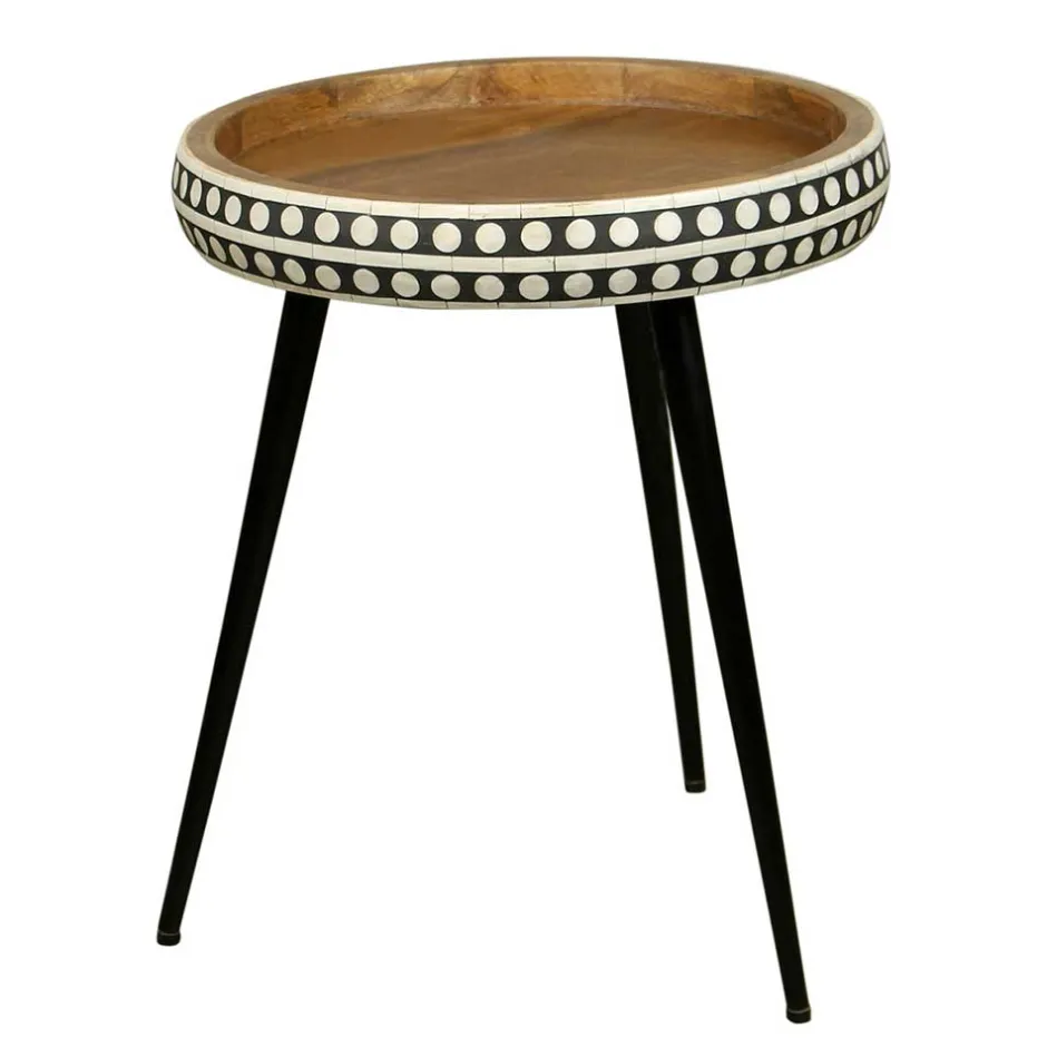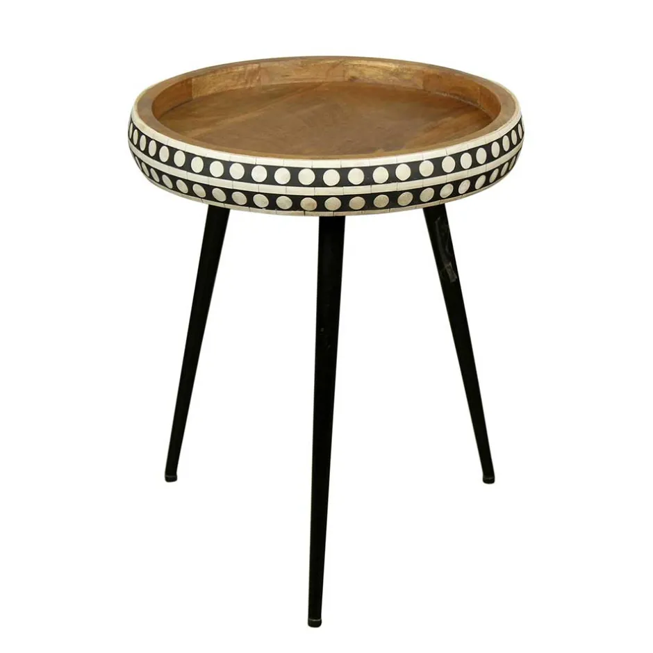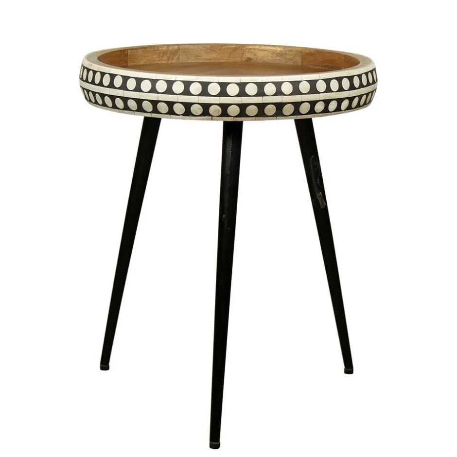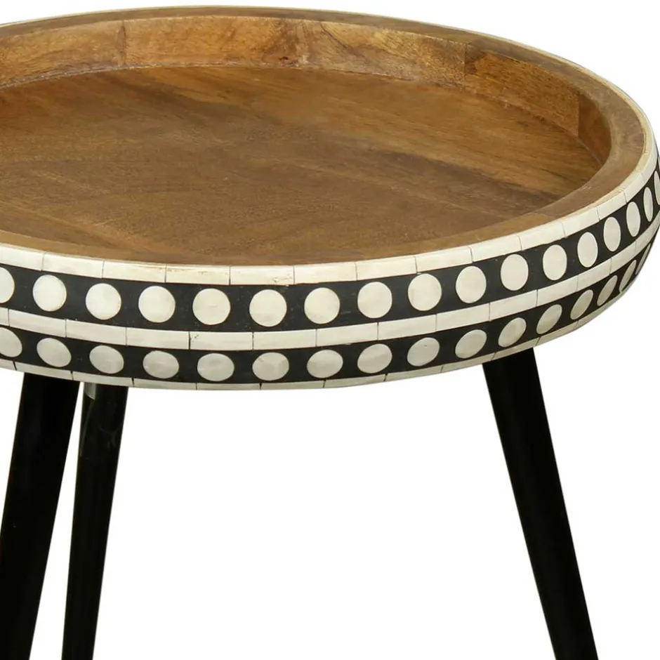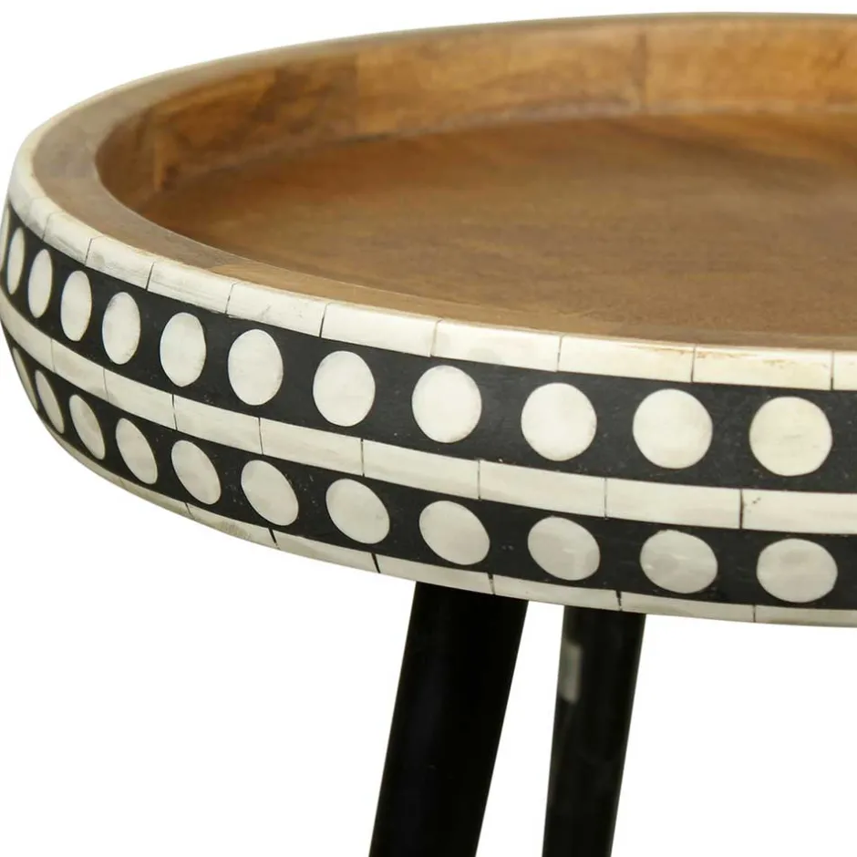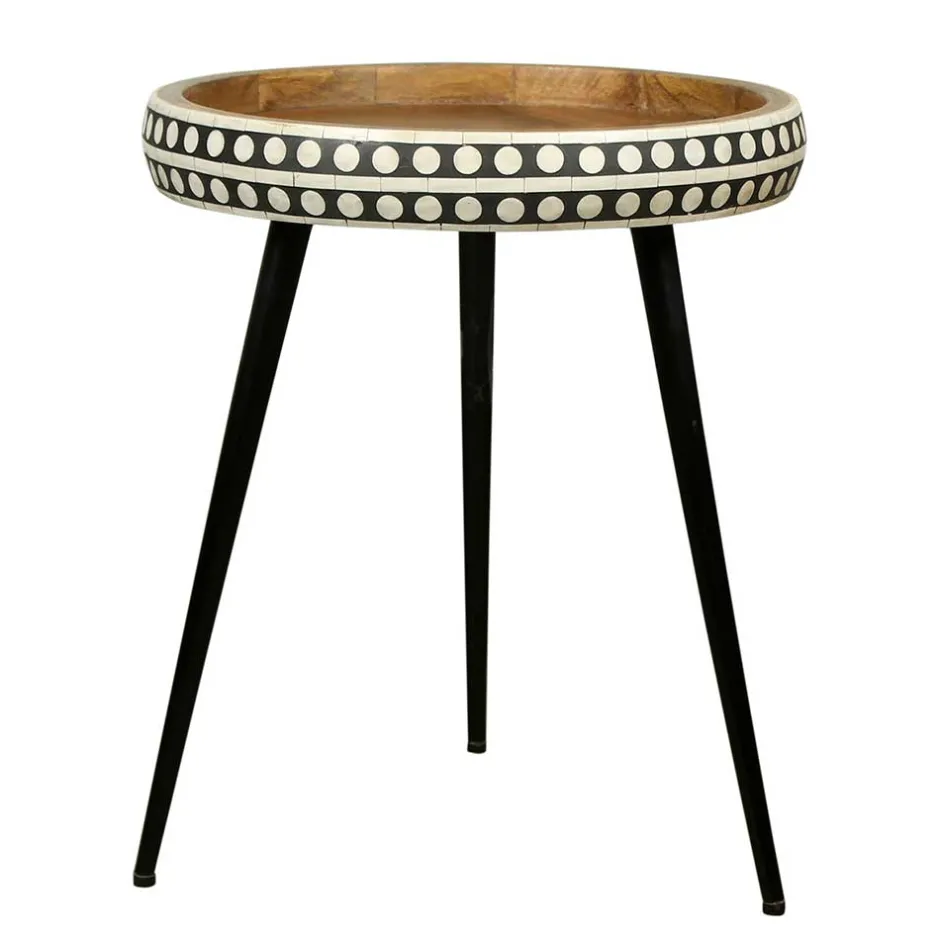 - Dekorativer Beistelltisch in Mangoholz, Weiß und Schwarz