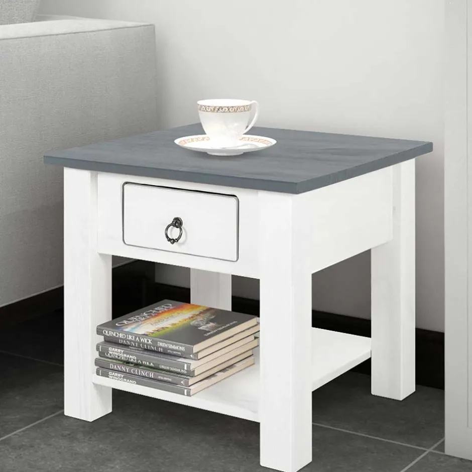 - Landhaus Beistelltisch in Weiß und Grau