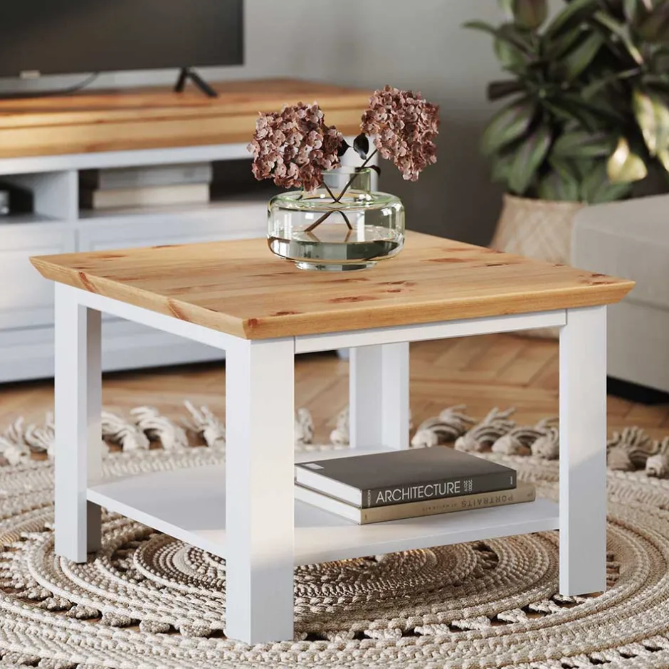 - Ansprechender Couchtisch in Weiß und Kieferfarben