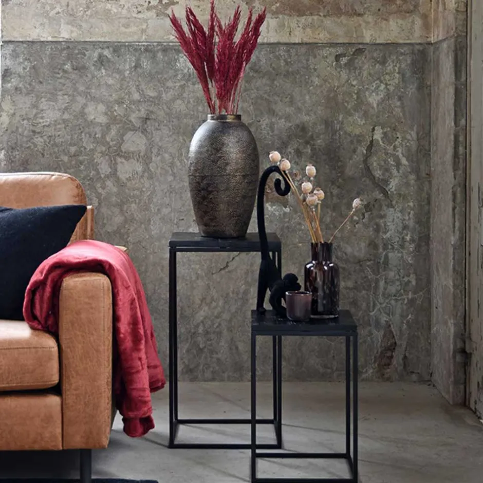 - Filigranes Bügelgestell aus schwarz lackiertem Metall