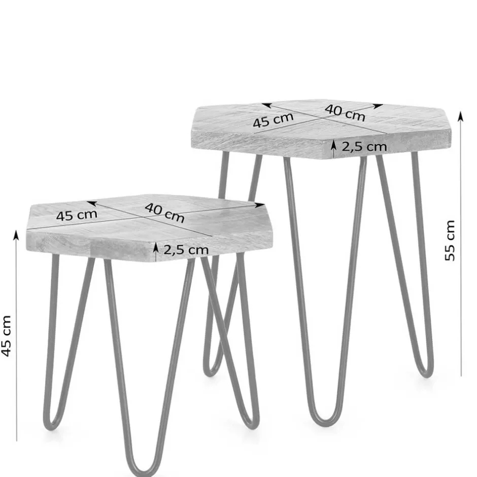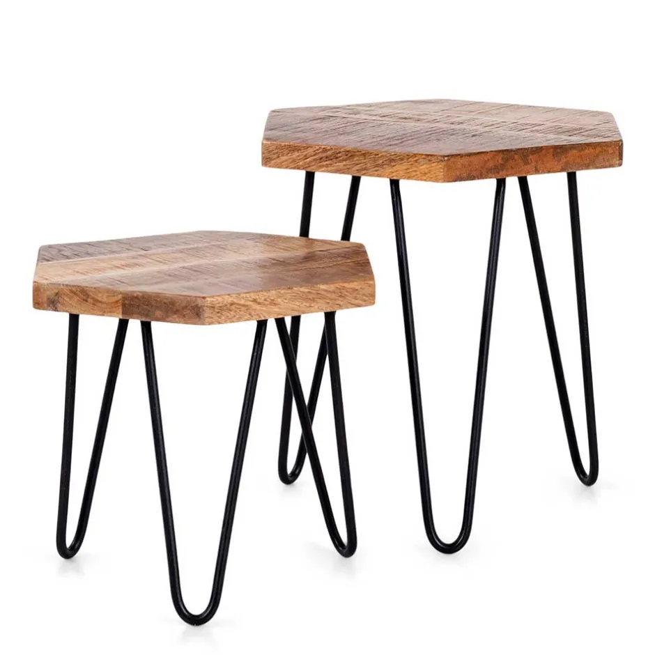 - Junges Beistelltisch Set in Mangoholz und Schwarz