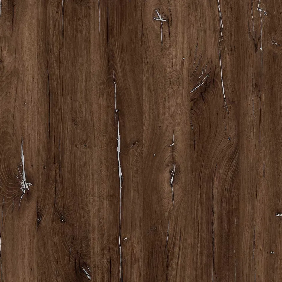 - Oberflächen in Holzoptik Eiche dunkel mit silberfarbigen Akzenten und in Schwarz beschichtet