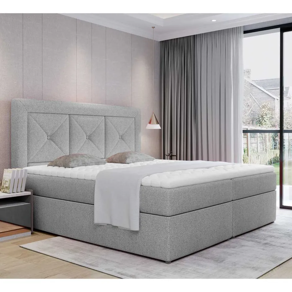 - Komfortables Boxbett in Hellgrau