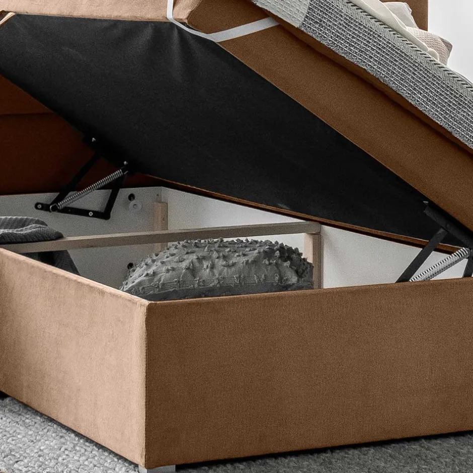 - Zwei geräumige Bettkästen, die jeweils in zwei Teile unterteilt sind, Öffnung mit Lift Funktion an den Längsseiten