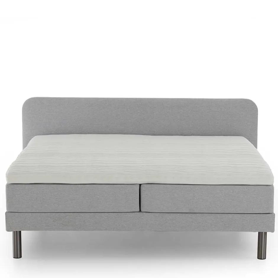 - Attraktives Boxspringbett in Hellgrau und Chromfarben