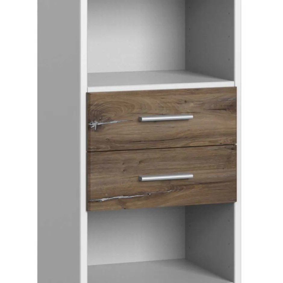 - Ansprechendes Regal in Weiß und Holzoptik Eiche verwittert