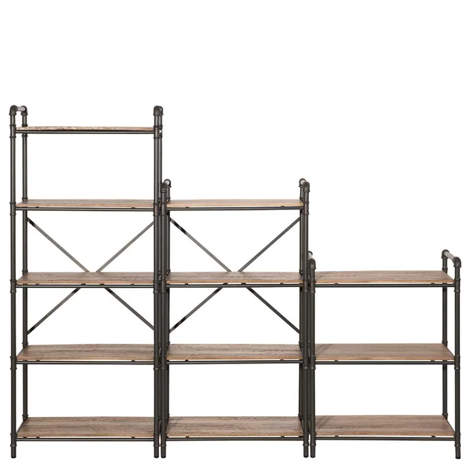 - Großzügige Regal-Kombination in Altholz-Optik, Kupferfarben und Schwarz