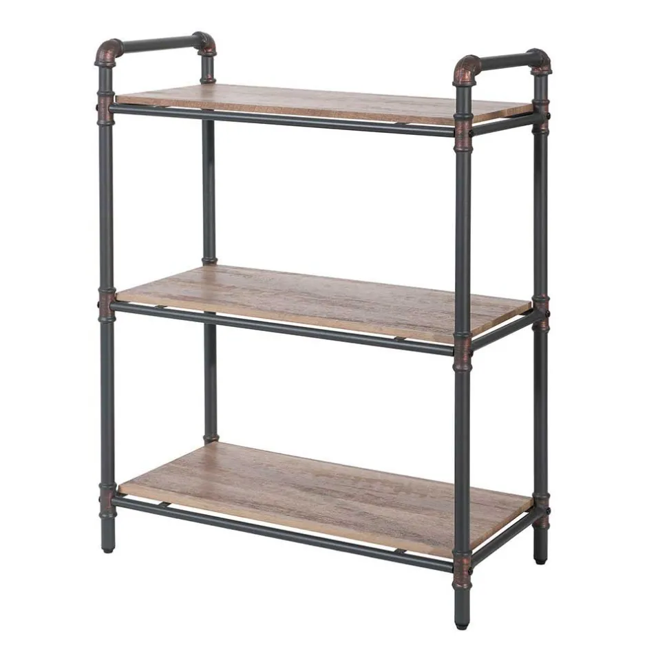 - Metall schwarz matt pulverbeschichtet und kufperfarbig akzentuiert, Holzwerkstoff-Oberfläche in Altholz-Optik melaminbeschichtet