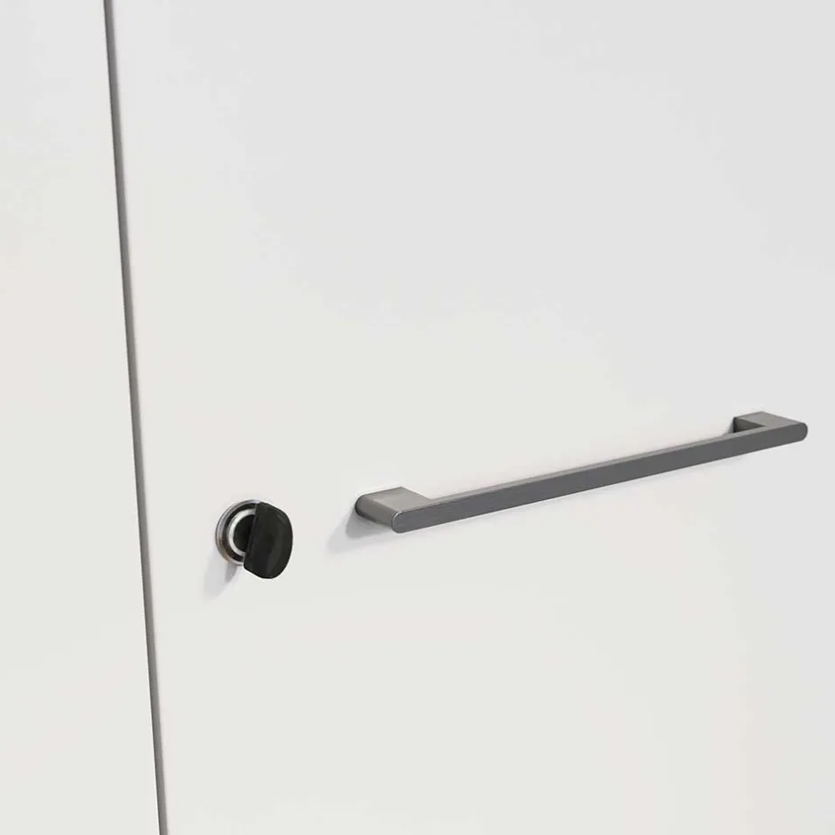 - Schlanke Metall-Bügelgriffe, dunkelgrau pulverbeschichtete Feinperlstruktur