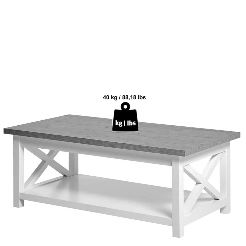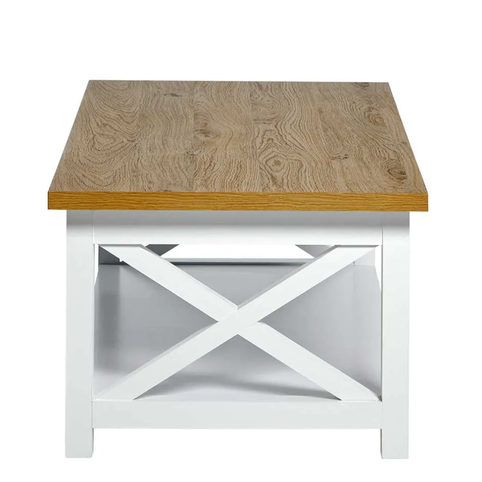 - Stilvoller Couchtisch in Weiß und Eichefarben