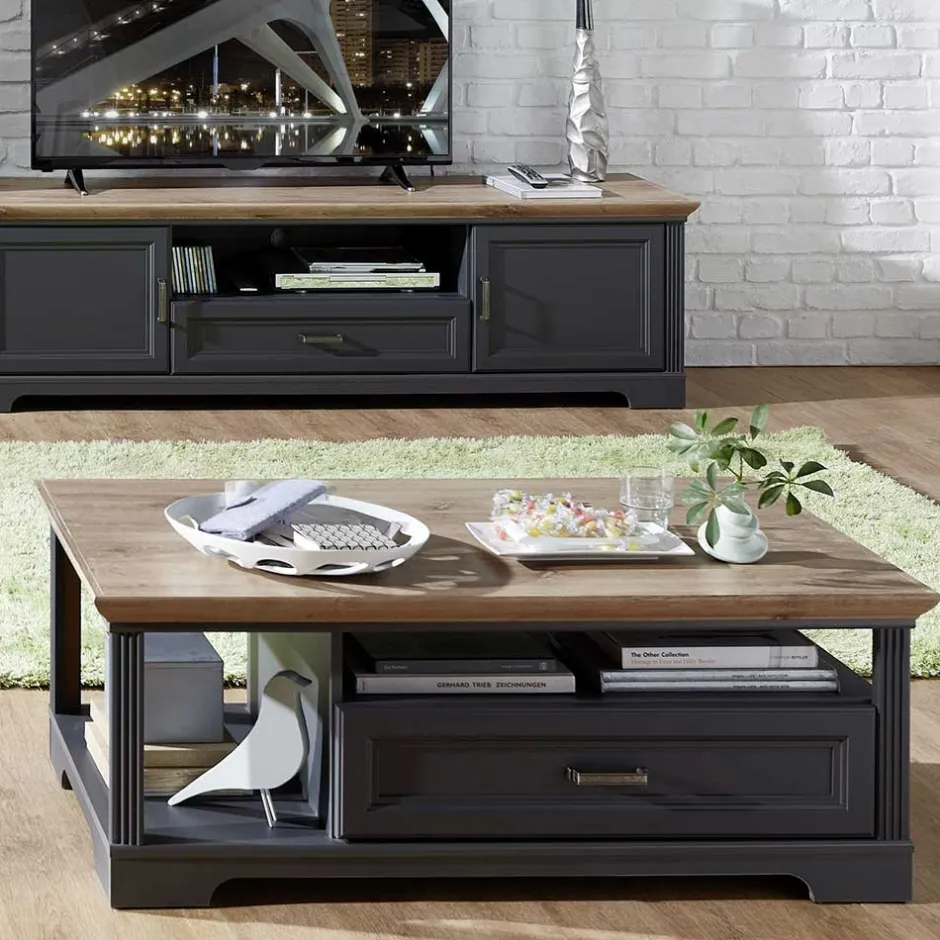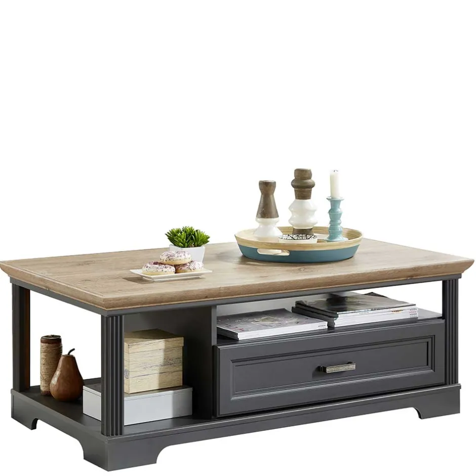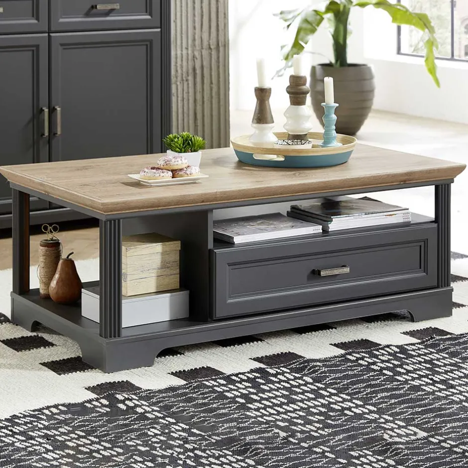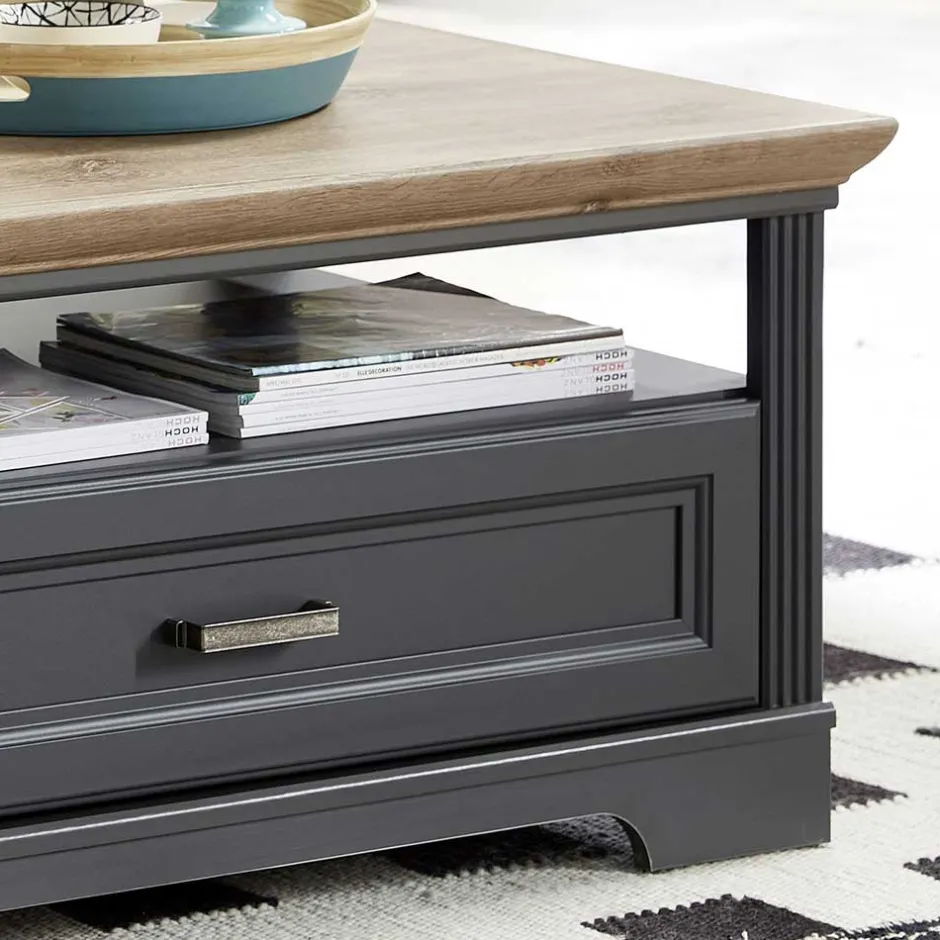 - Stilvoller Couchtisch in Dunkelgrau und Eichefarben