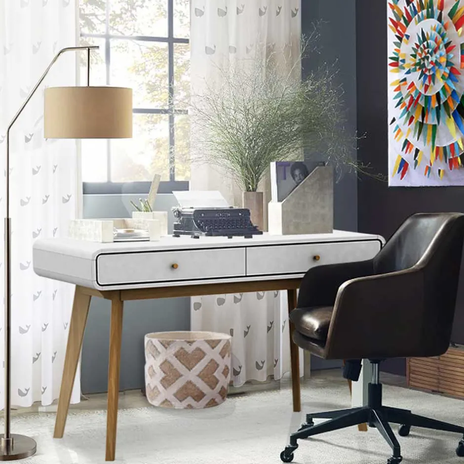 - Eleganter Schreibtisch in Weiß und Holz Naturfarben