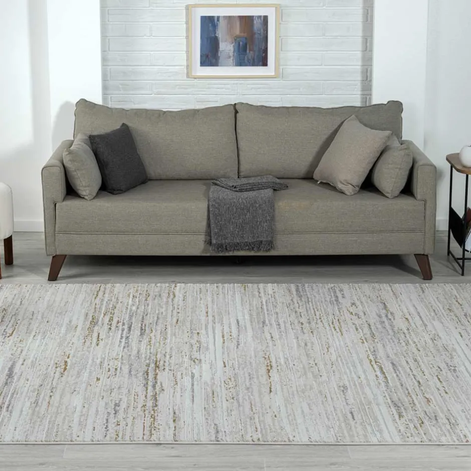 - Zeitgemäßer Teppich in Hellgrau und Cremefarben