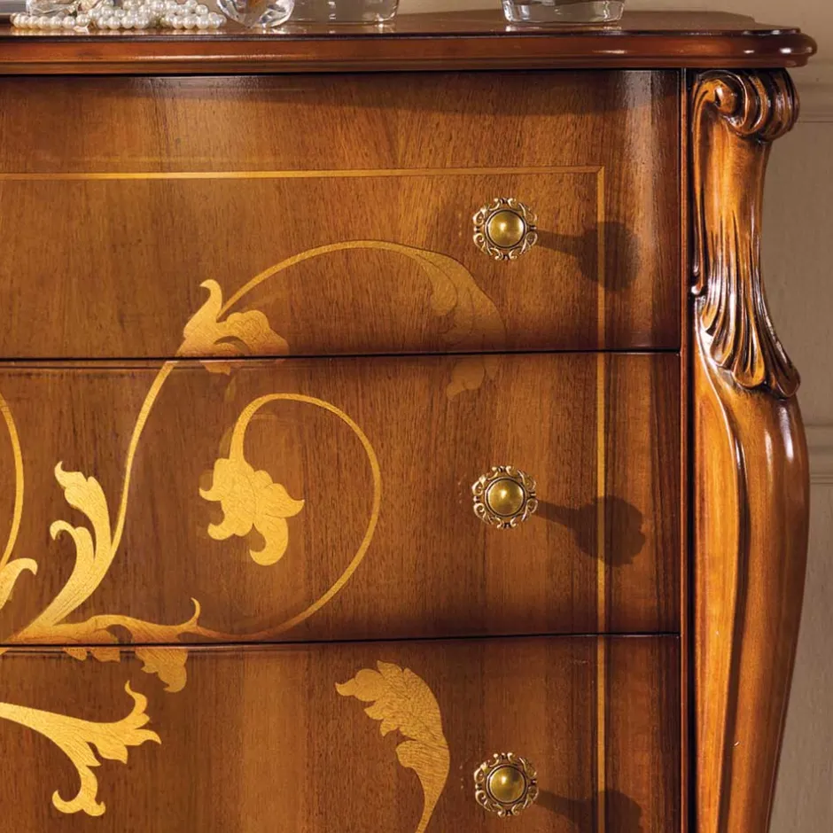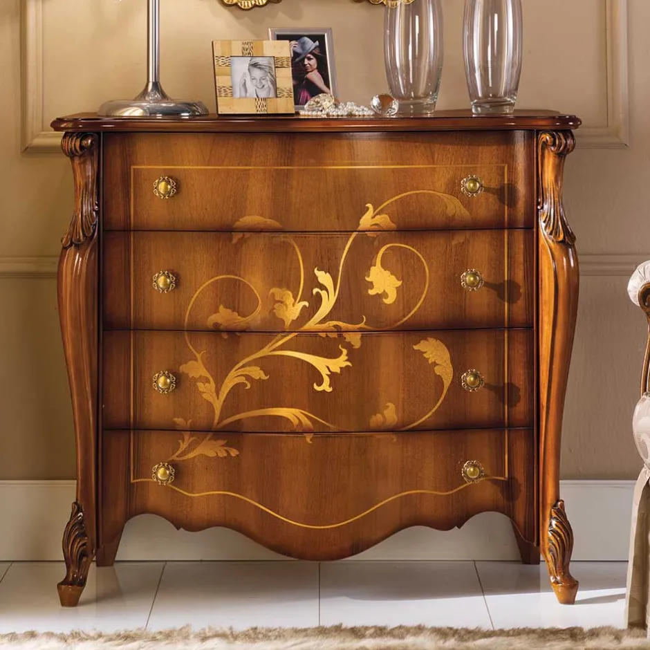 - Furniert mit echtem Nussbaumholz, handgearbeitete Intarsien aus Pappelholz, Oberfläche komplett lackiert