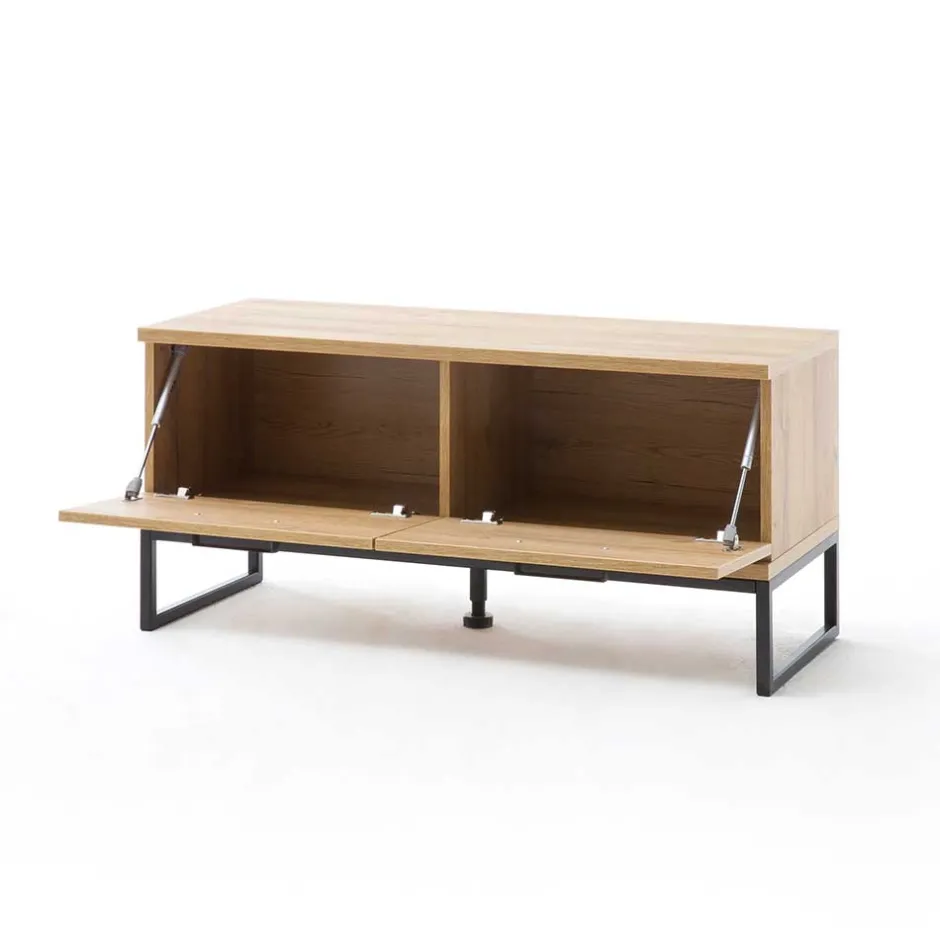 - Melaminbeschichtete Oberfläche in Holzoptik Wildeiche, Metall schwarz pulverbeschichtet