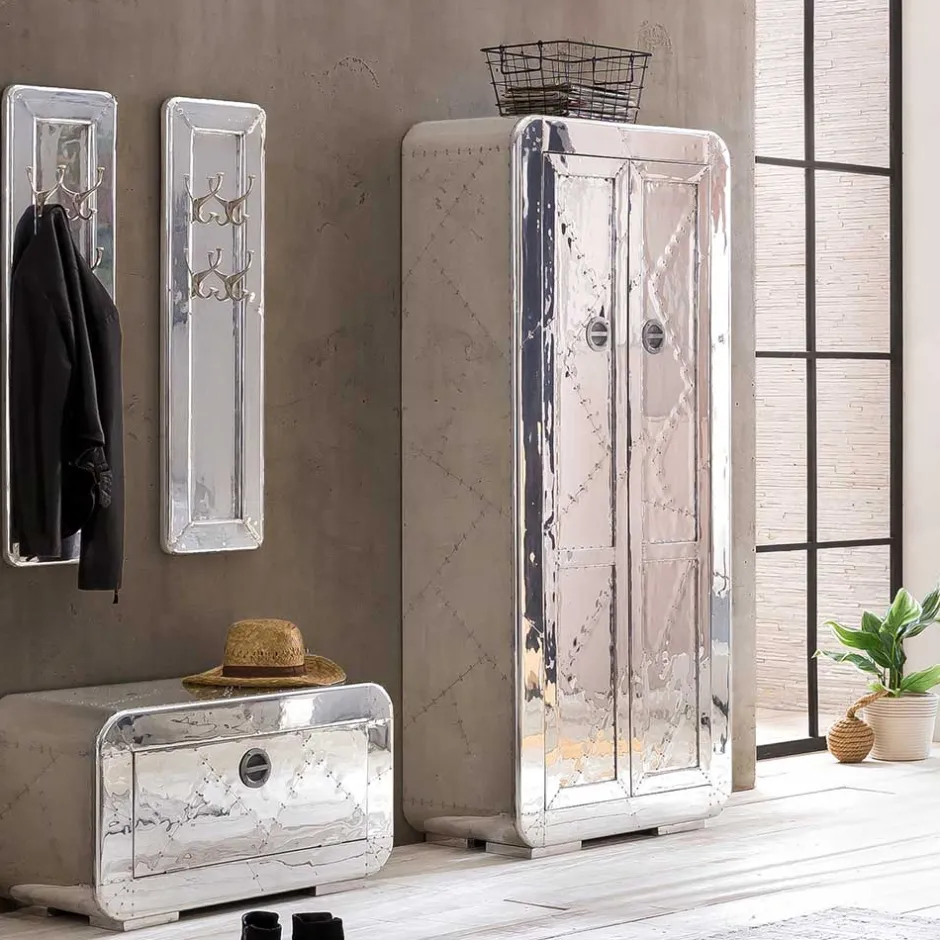 - Brillantes Garderobenmöbel Set in Silberfarben