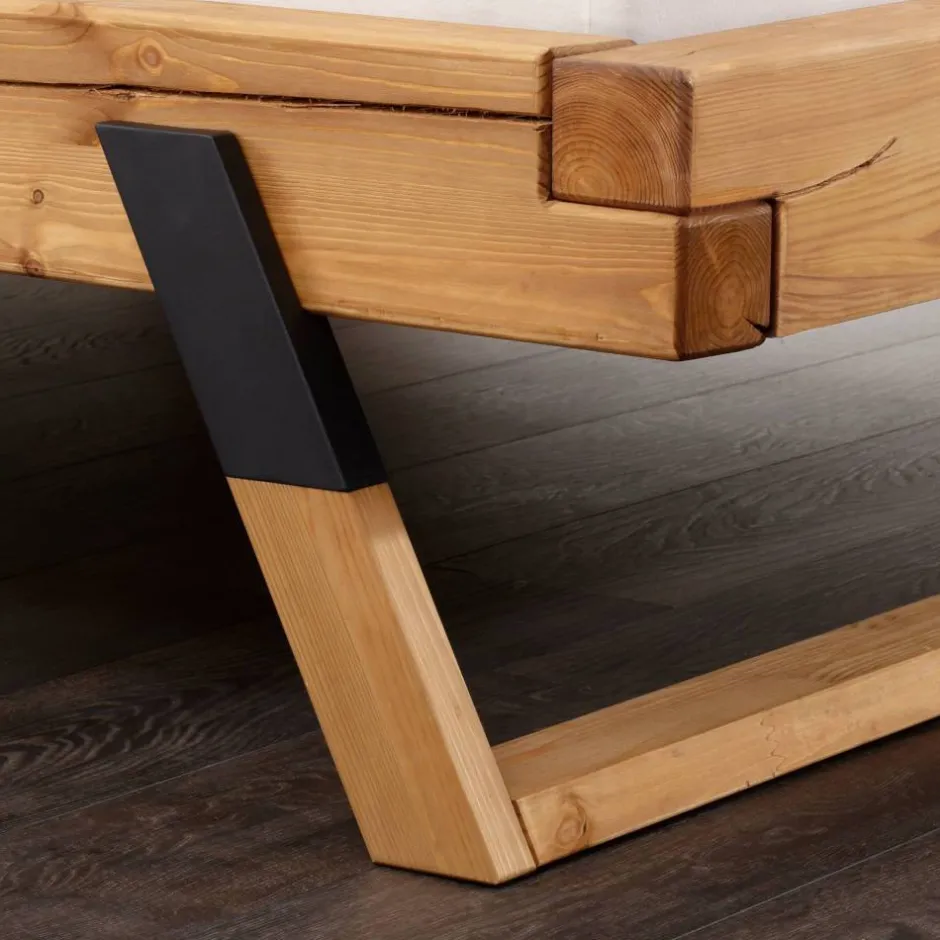 - Schräg konstruierte Holzkufen sorgen für die schwebende Optik, attraktive Metallabsetzungen in Anthrazit