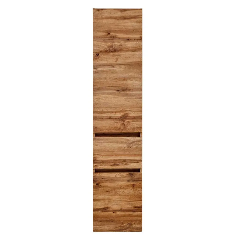 - Holzoptik Wildeiche: Korpus melaminbeschichtet, Front tiefgezogen foliert, fühlbare Struktur