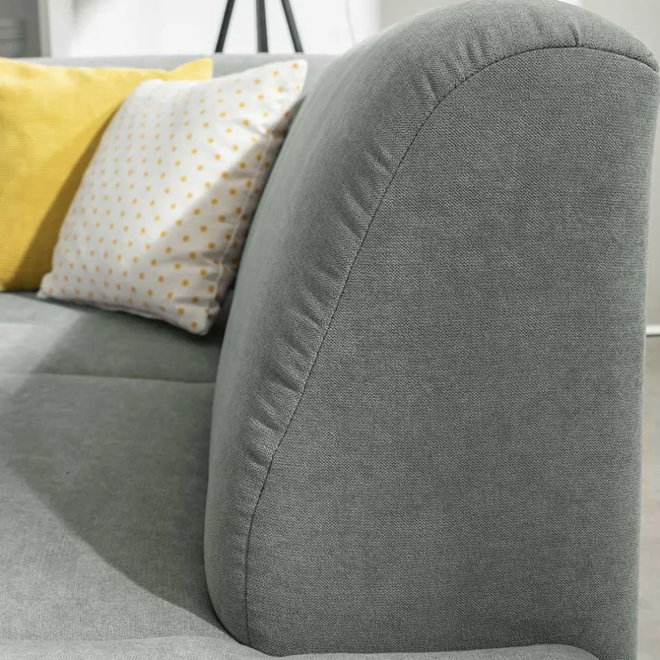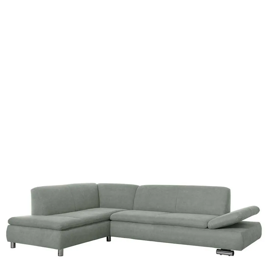 - Schickes Ecksofa in Hellgrün und Chromfarben