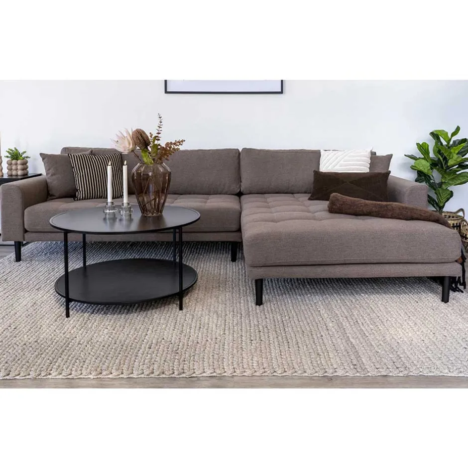 - Die Couch in Braun und Schwarz ist ein echter Hingucker und passt perfekt zum modernen Interieur