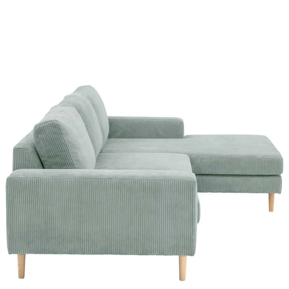 - Trendstarkes Ecksofa in Silbergrau und Buchefarben