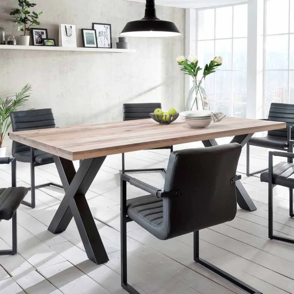 - Exklusiver Esstisch in Eiche gekälkt und Schwarz