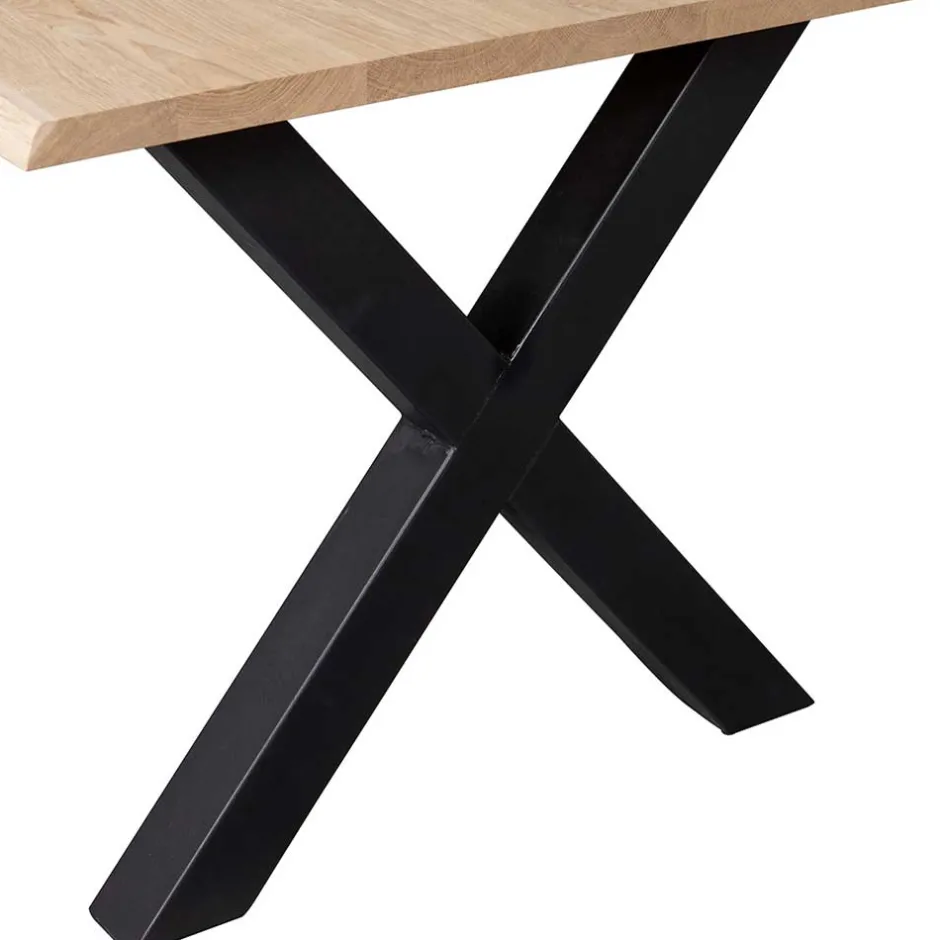 - Markantes, mattschwarz pulverbeschichtetes Metallgestell in X-Form