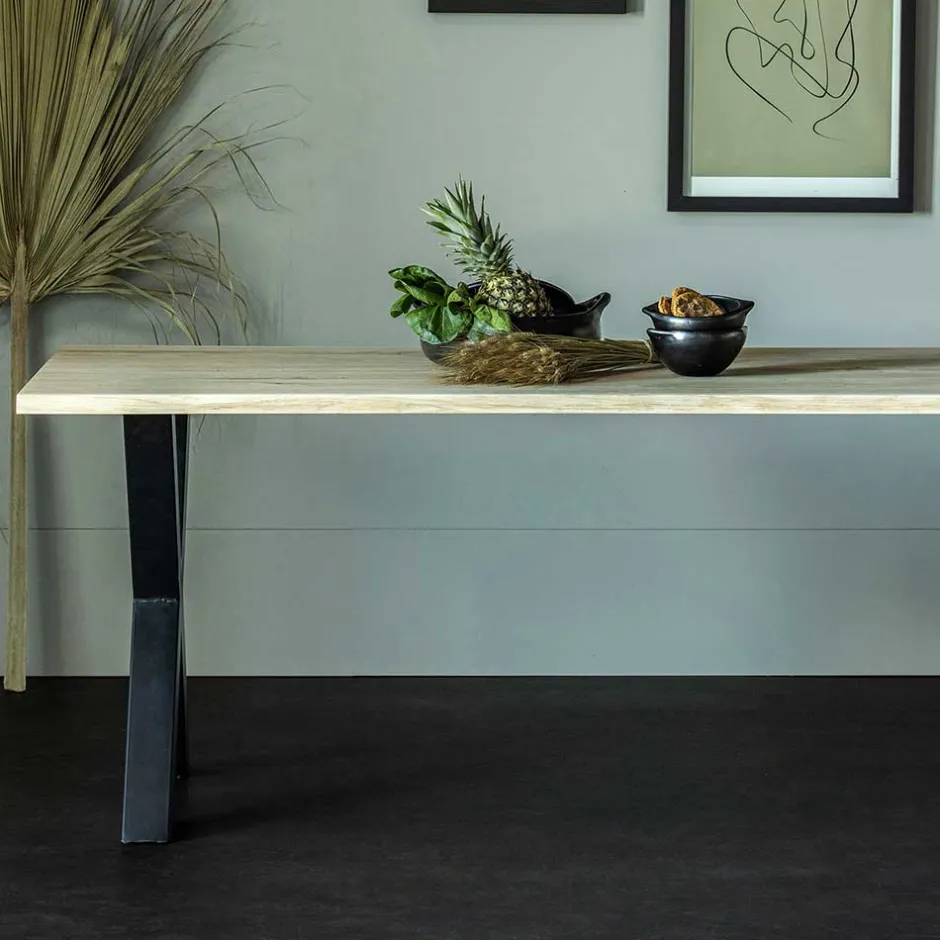 - Rustikaler Esstisch in Eichefarben und Schwarz