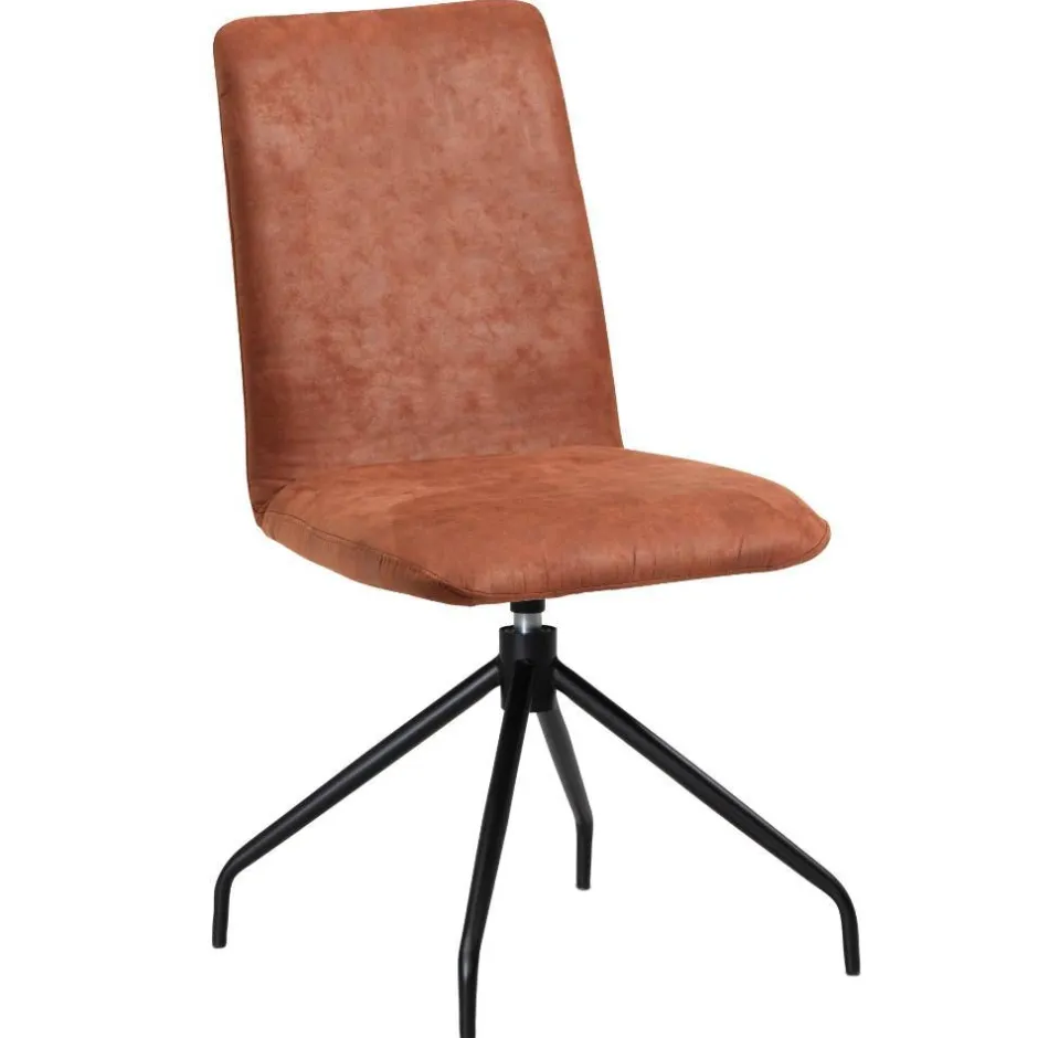 - Schlichte Stühle in Cognacbraun und Schwarz