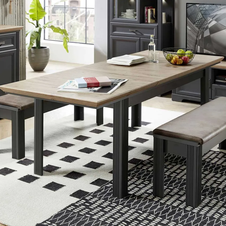 - Exzellenter Esstisch in Dunkelgrau und Eichefarben