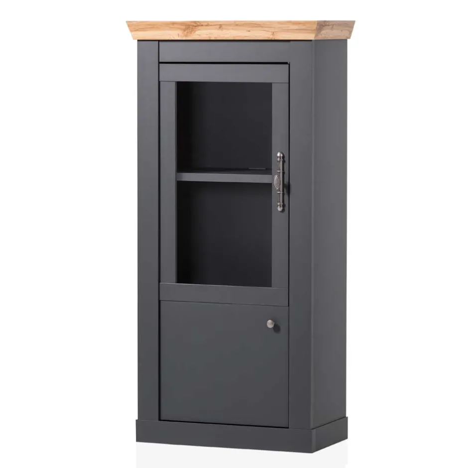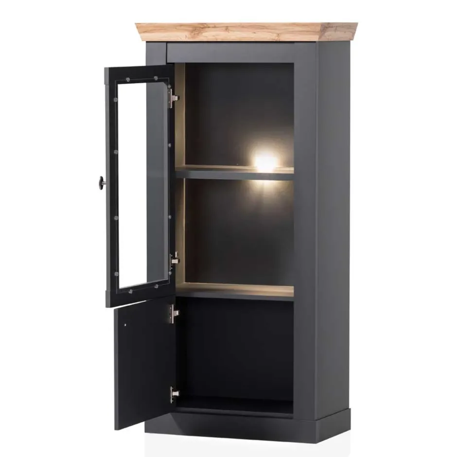 - Ansprechende Vitrine in Anthrazit und Wildeichefarben
