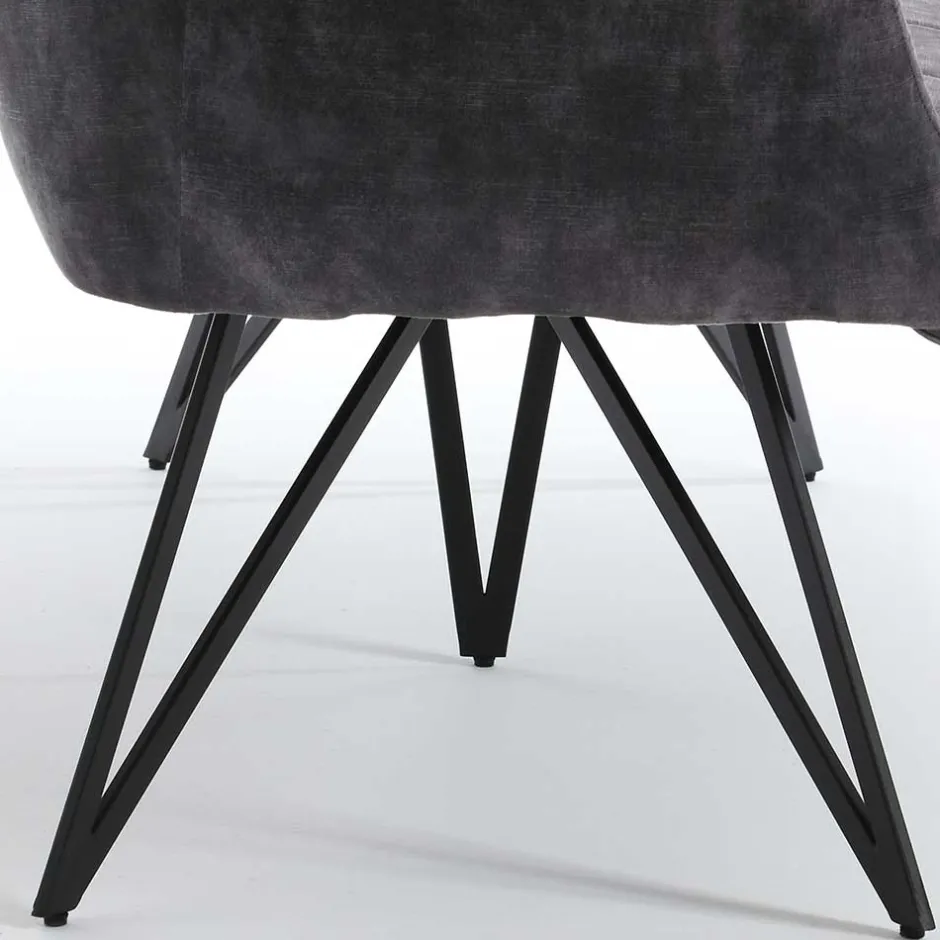 - Schwarz pulverbeschichtetes, schräg konstruiertes Metallgestell in dekorativer V-Form