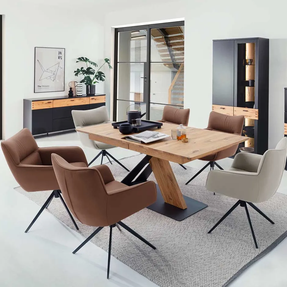 - Leicht nach hinten geneigte Rückenlehne mit tiefen Steppungen
