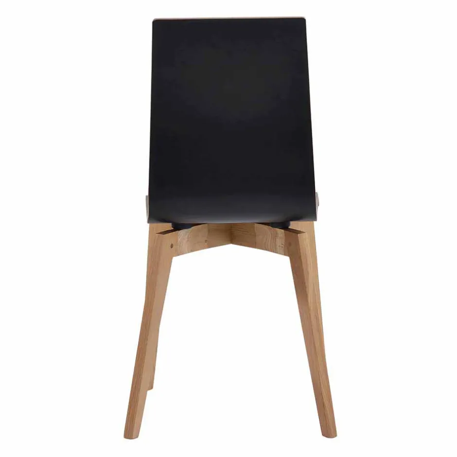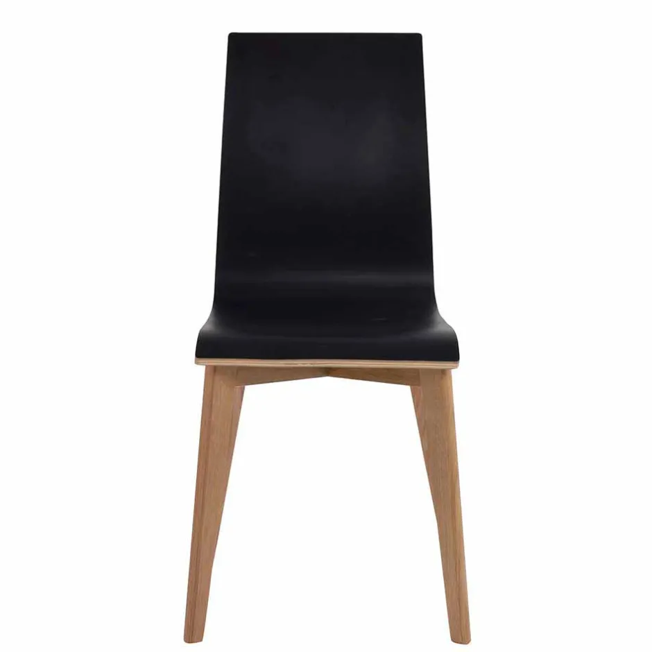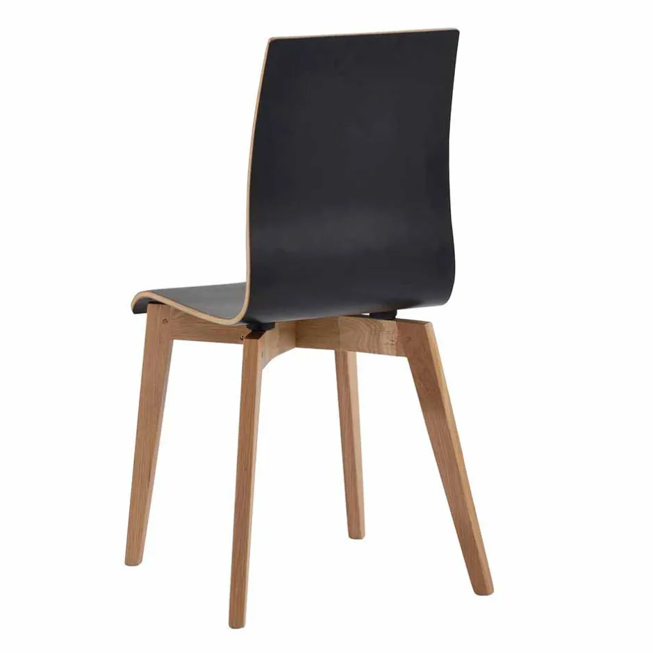 - Sitz- und Rückenoberfläche mit strapazierfähigem Hochdrucklaminat in Schwarz, seitlich farblich kontrastierend, Gestell aus Eiche Massivholz in klar lackiert