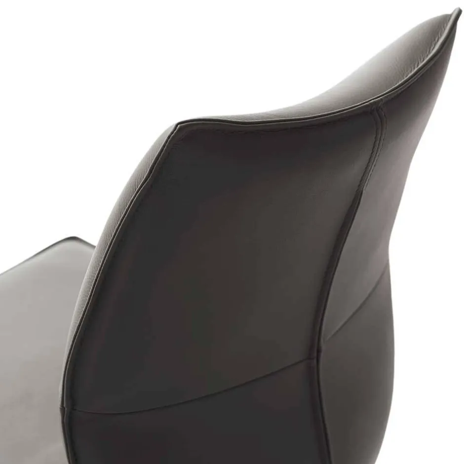 - Bequeme Stühle in Dunkelbraun und Edelstahlfarben