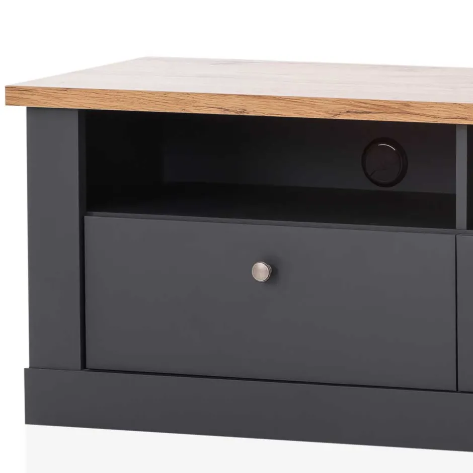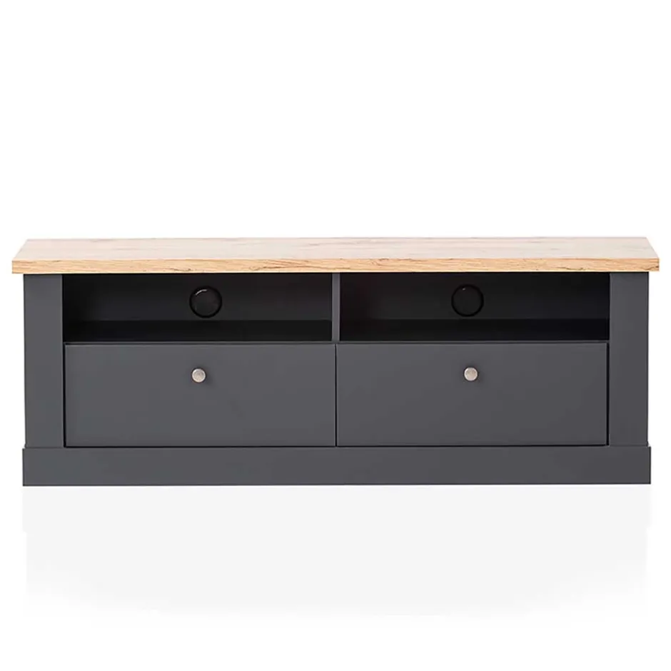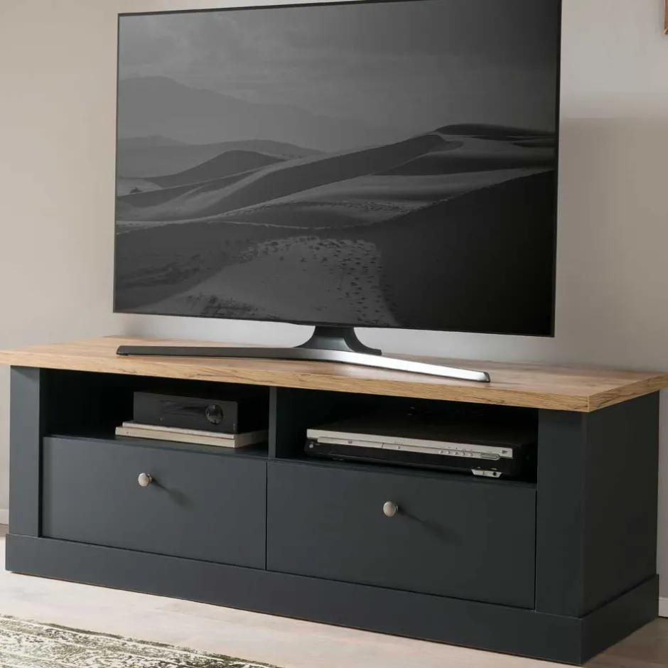 - Smartes TV-Lowboard in Anthrazit und Wildeichefarben