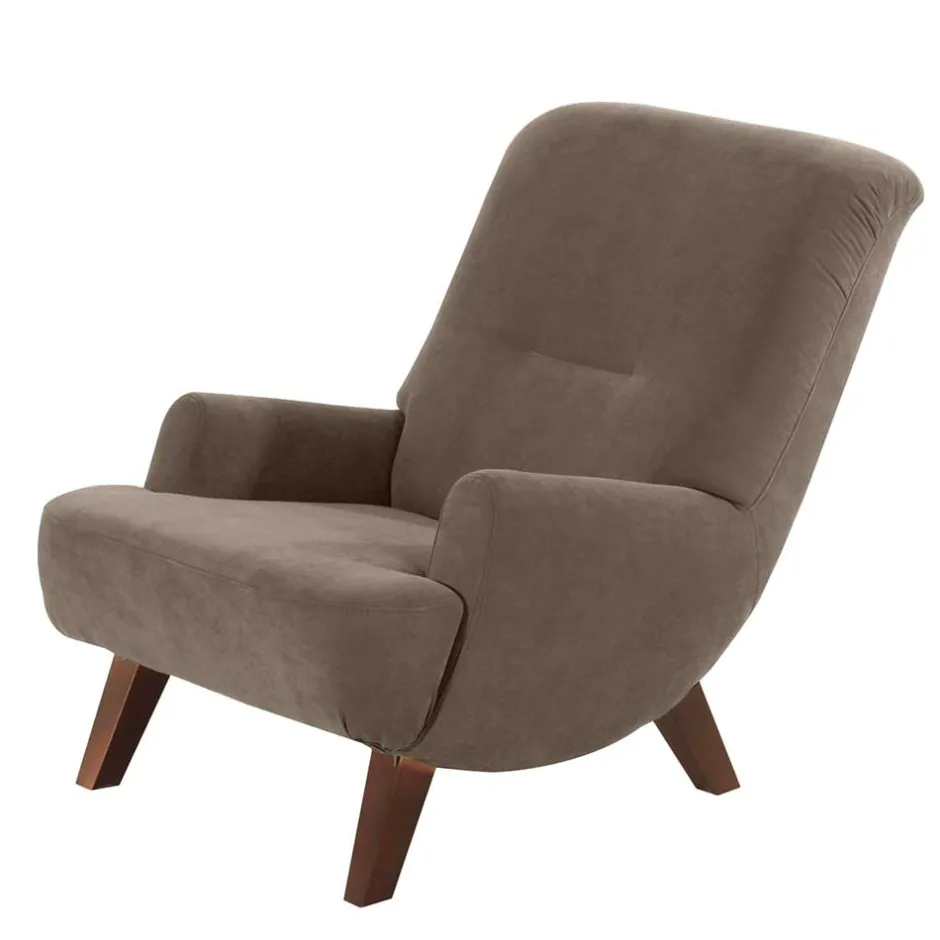 - Schicker Sessel in Beigegrau und Nussbaumfarben