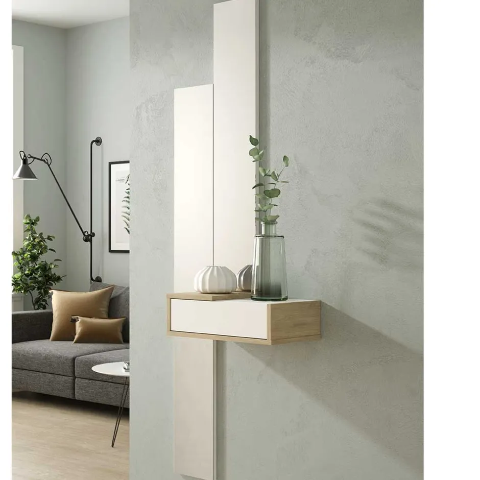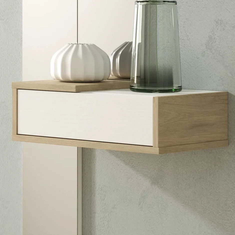 - Schlichte Flurmöbel Kombination in Wildeichefarben und Weiß