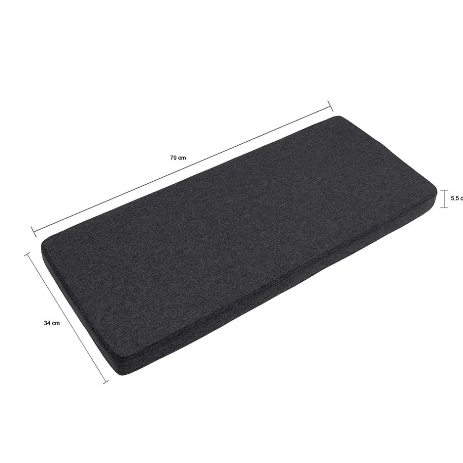 - Variante 002 mit gepolstertem Sitzkissen, grauer Webstoff Bezug (100 % Polyester), Maße (BxHxT): 79×5,5×34 cm