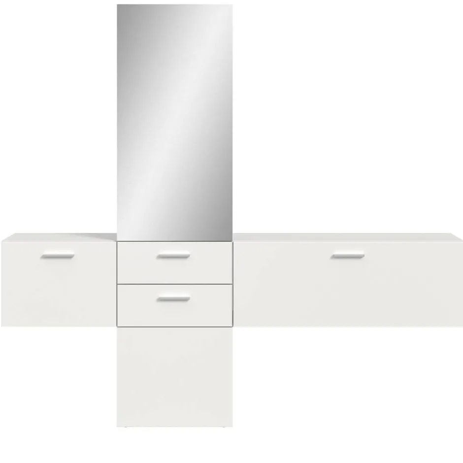 - Hinter dem Spiegel befindet sich eine Kleiderstange