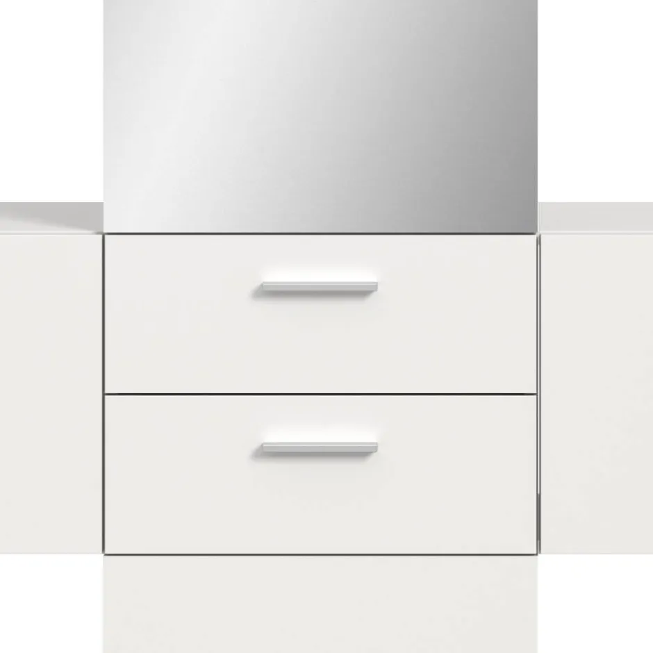- Aus Spiegelglas und Holzwerkstoff (Spanplatte) hergestellt