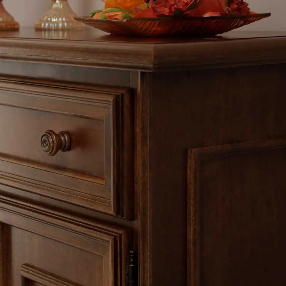 - Walnussbaumfarbig antik gebeizte und lackierte Oberflächen, von Hand poliert für einen unikaten Effekt