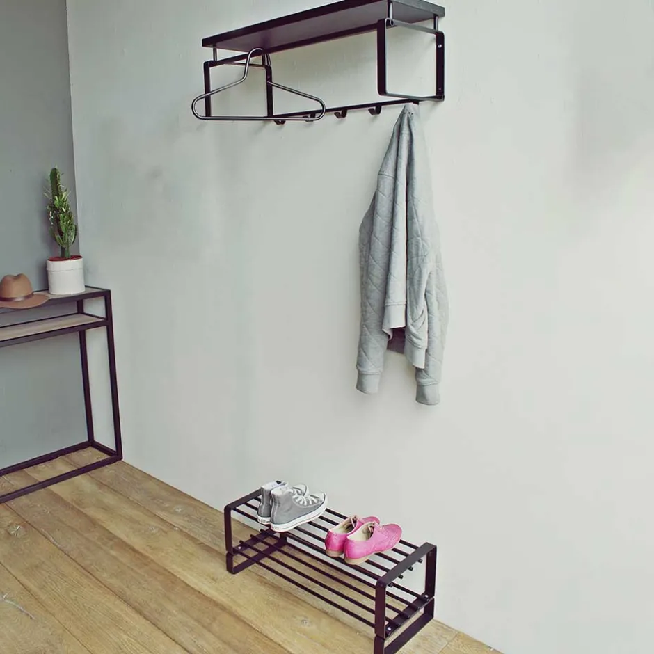 - Ausgestattet mit fünf gebogenen Kleiderhaken, zudem bieten zwei Stangen seitlich und eine Stange unterhalb der Hutablage Platz für Kleiderbügel