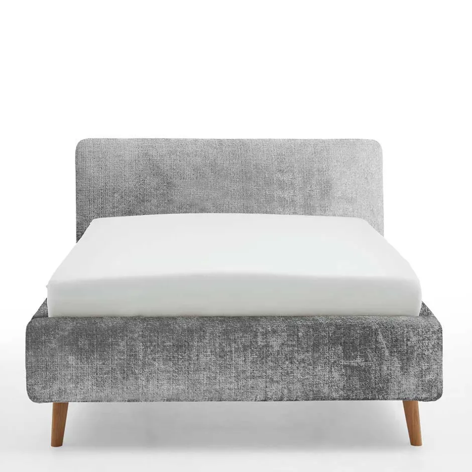 - Harmonisches Polsterbett in Grau und Eichefarben