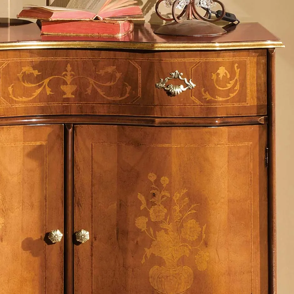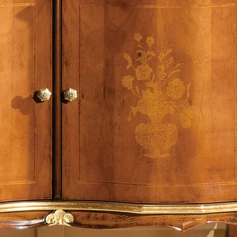 - Zwei Drehtüren, kunstvoll gestaltet mit floralen Einlegearbeiten aus Pappelholz