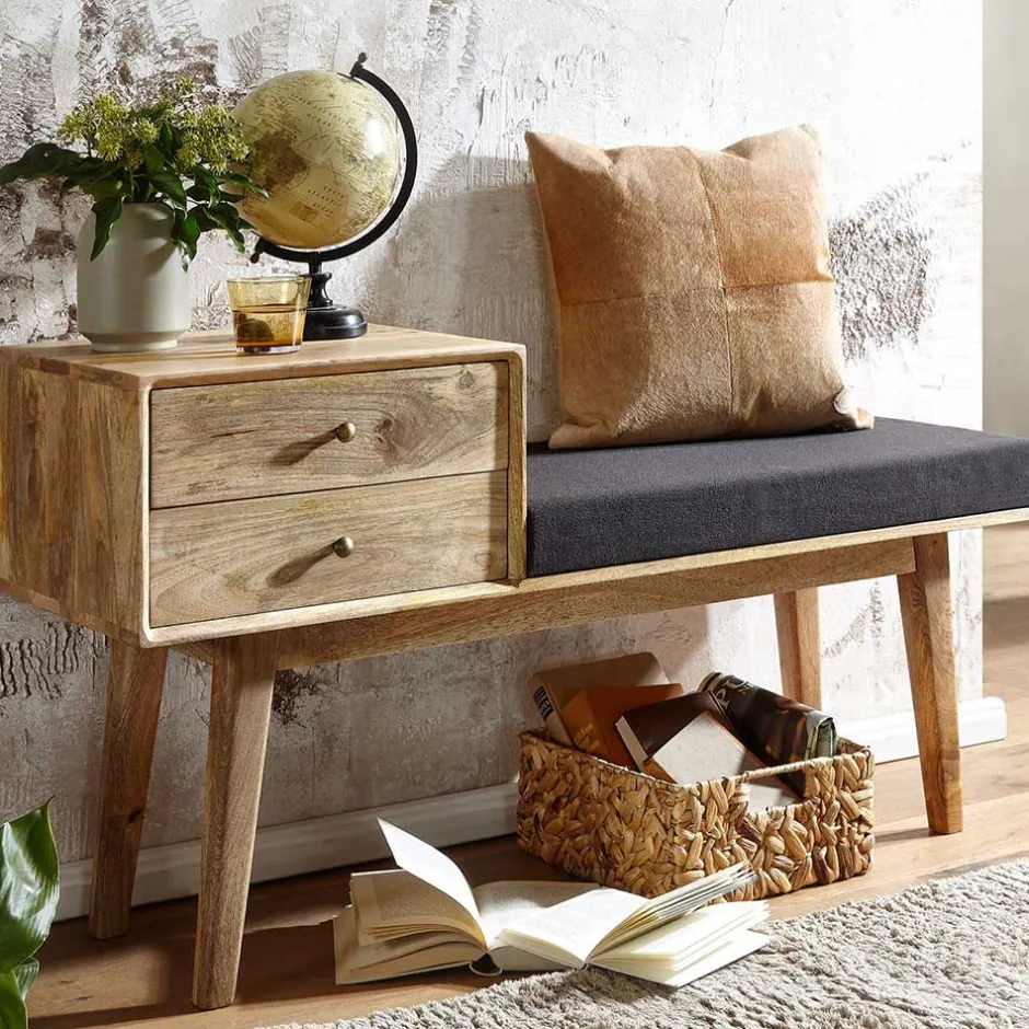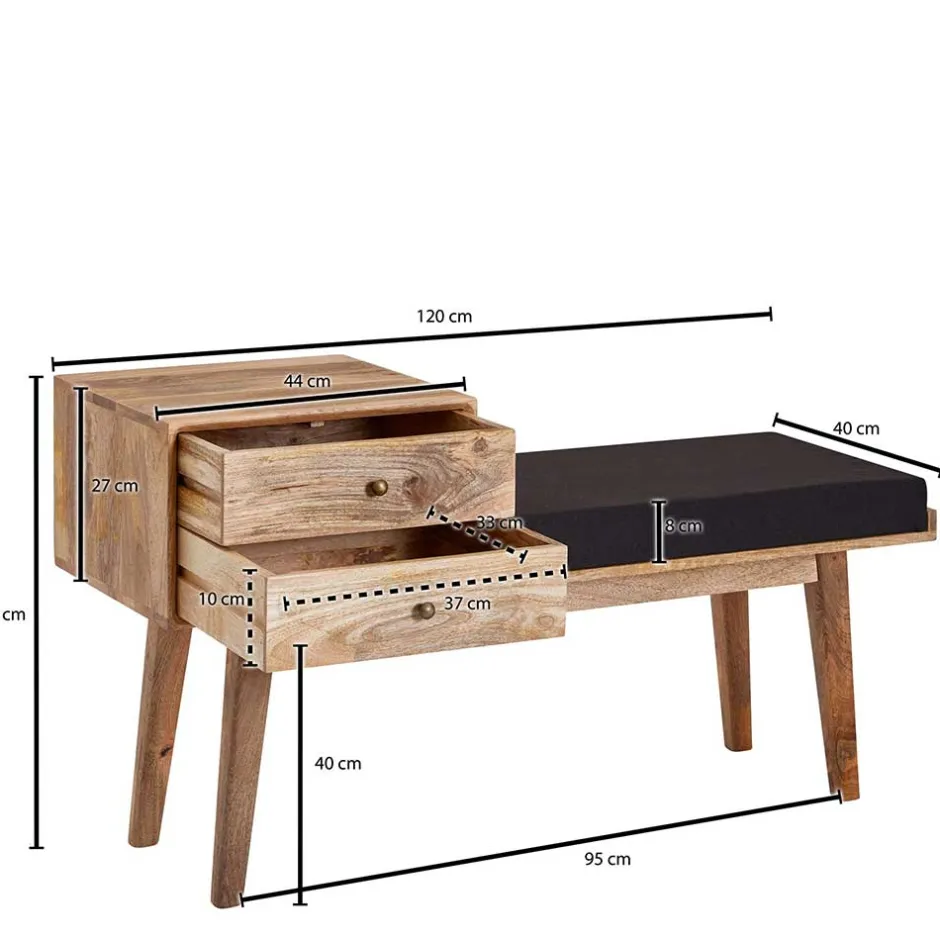 - Klasse Flur Sitzbank in Holz Naturfarben und Schwarzgrau