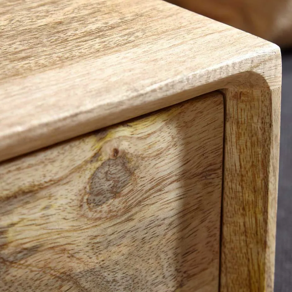 - Aus Mangobaum Massivholz und Webstoff hergestellt